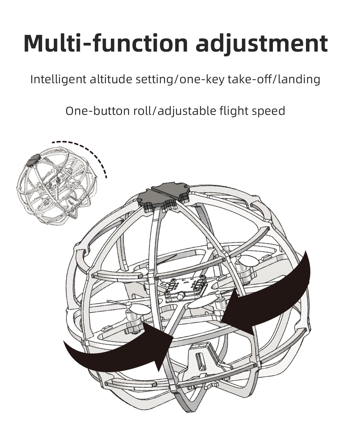 2. Intelligent altitude setting/one-key take-off/landing/one-key rollover/adjustable flight speed and other functions